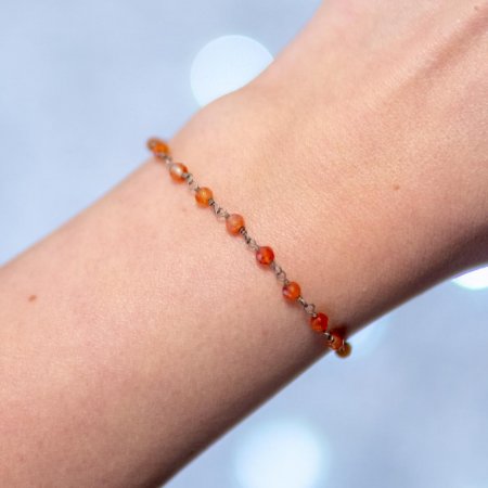 Bracelet en cornaline et argent 925 avec chainette de rallonge.